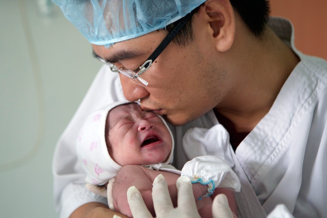 Rất nhẹ nhàng, từ từ đưa bé ra khỏi bụng mẹ.