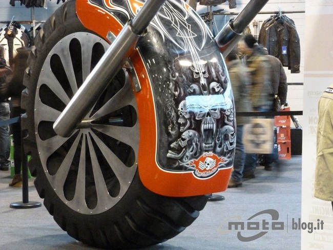 Trong triển lãm Motor Bike Expo, khách tham quan đã có dịp ngỡ ngàng trước một mẫu môtô cực kỳ đồ sộ mang tên Regio Design XXL Chopper.