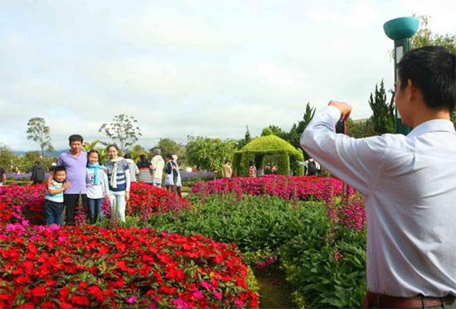| Công viên trung tâm của Đà Lạt, những ngày gần đến Festival luôn thu hút du khách đến ngắm hoa. |