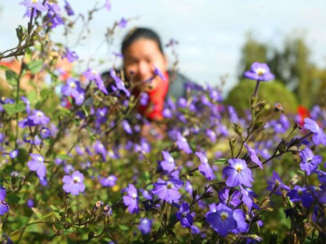 | Hoa Forget me not nở tím cả một vùng, loài hoa nay được các bạn trẻ yêu thích. |