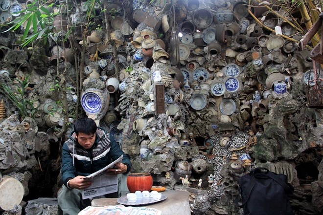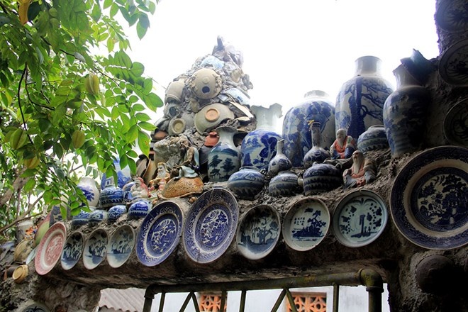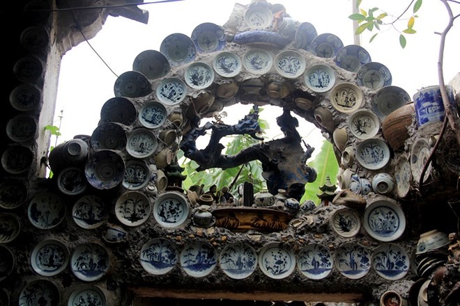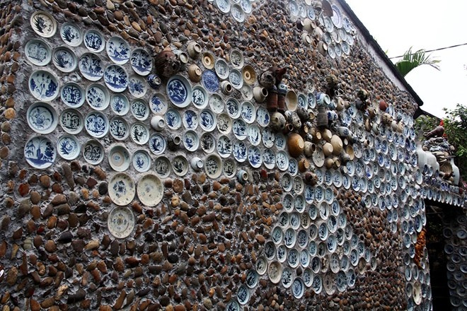 | Ngôi nhà độc nhất vô nhị của ông Trường được tạo thành bằng hơn 9.000 tác phẩm gốm sứ cổ. |