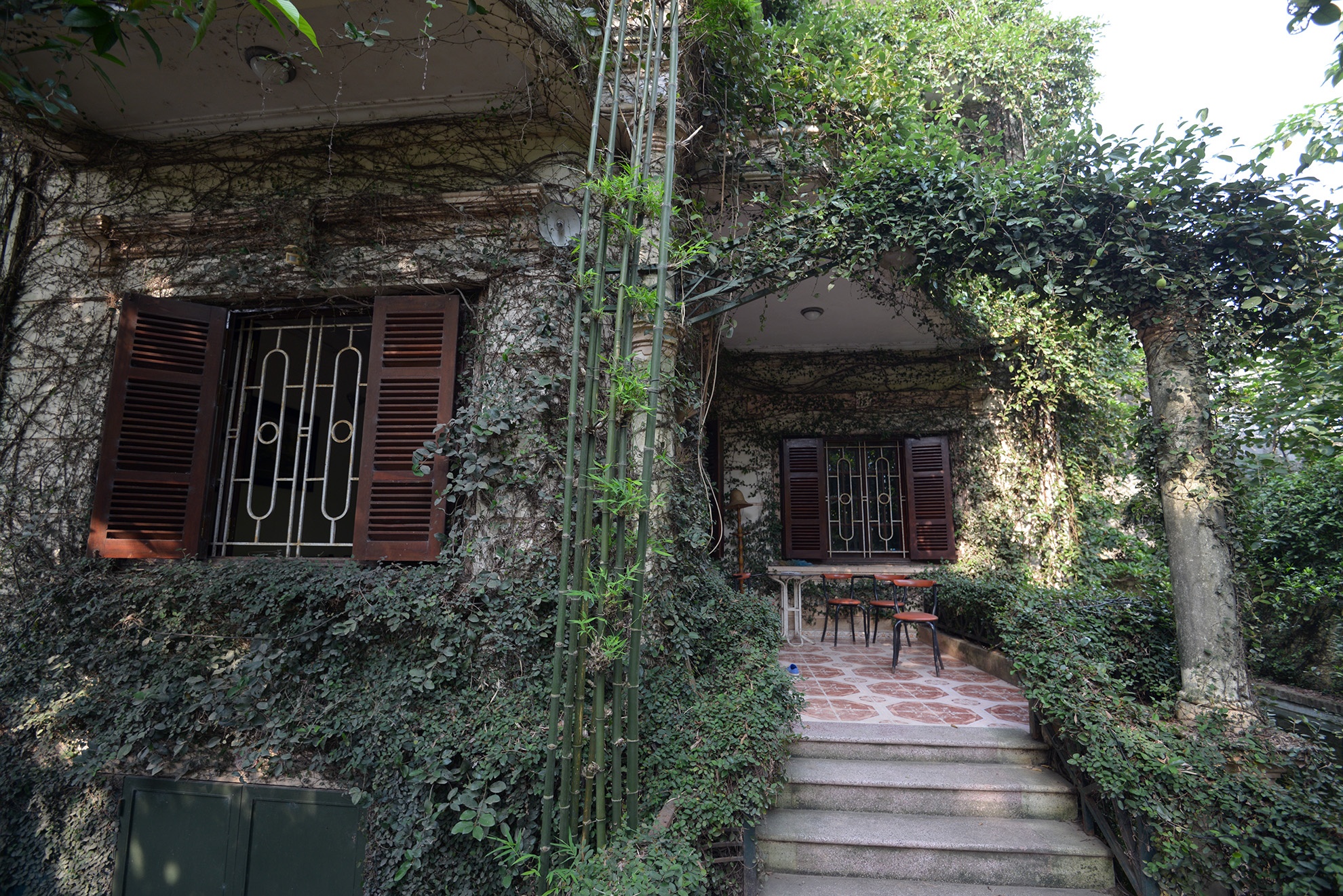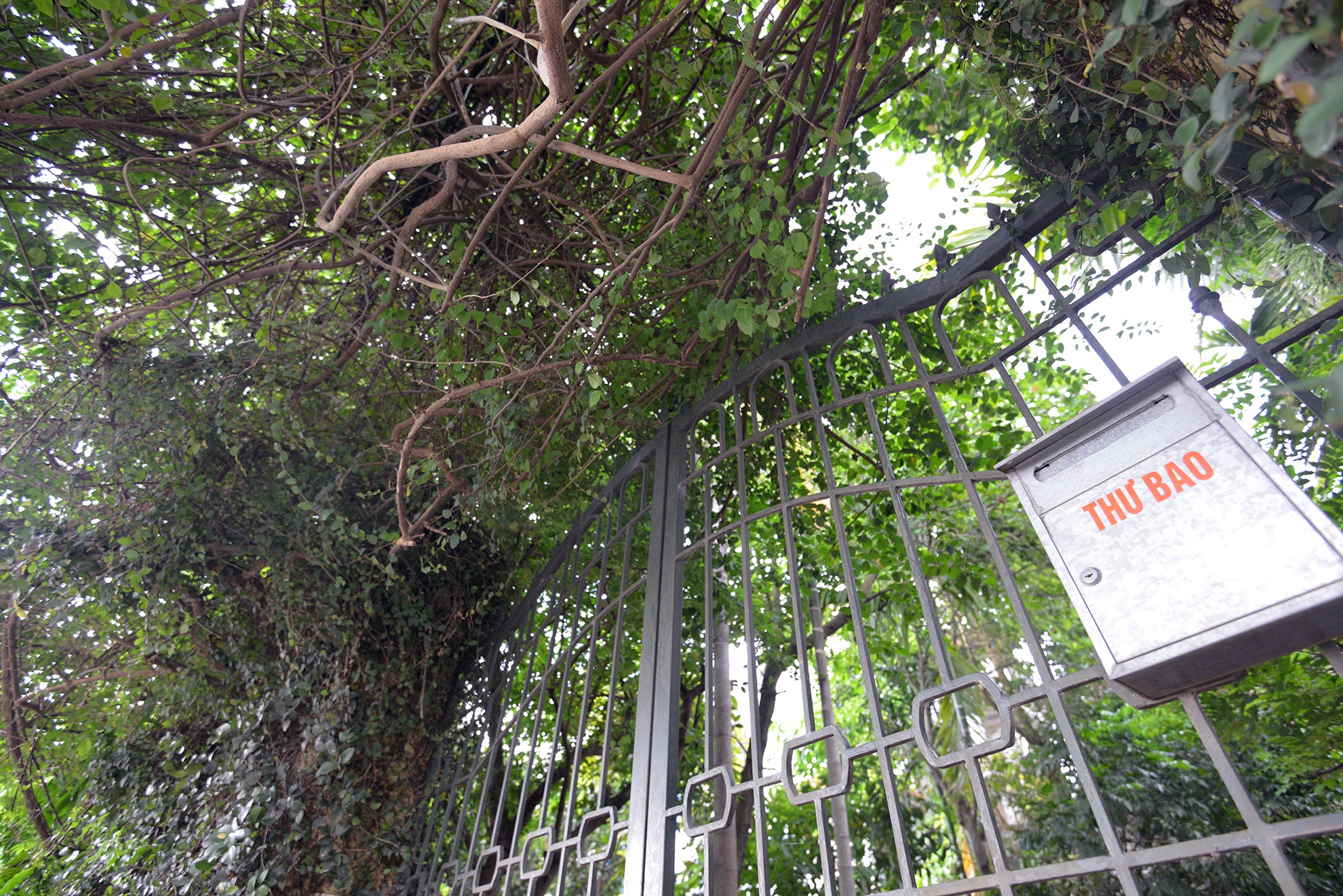 Ngôi nhà nằm sát sông Hồng thuộc phường Ngọc Thụy (Long Biên, Hà Nội), có đặc điểm toàn cây xanh, dây leo mọc chằng chịt ngay từ cổng.