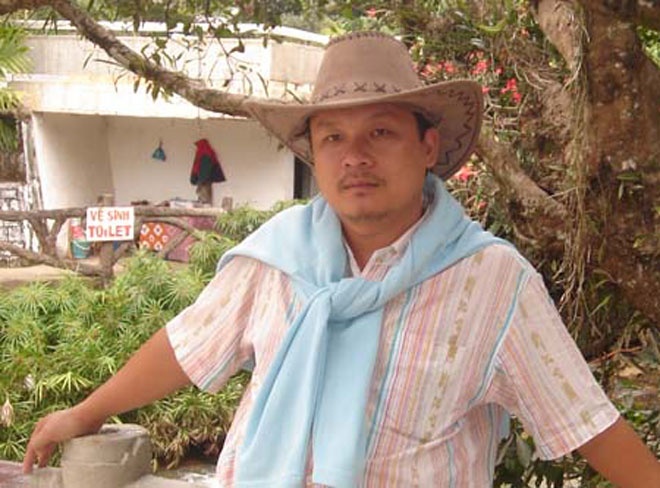 | Ông Trịnh Bá Dũng - Tác giả của công trình điêu khắc, được mệnh danh là "người chinh phục đất". |