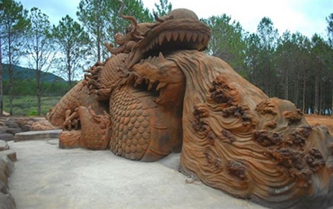 | Chi tiết điêu khắc đầu rồng ở vị trí cổng vào |