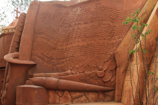 | Nhạc phổ bài hát nổi tiếng 'Ai Lên Xứ Hoa Đào' của tác giả Tường Nguyên cũng được khắc họa một phần ở đây... |