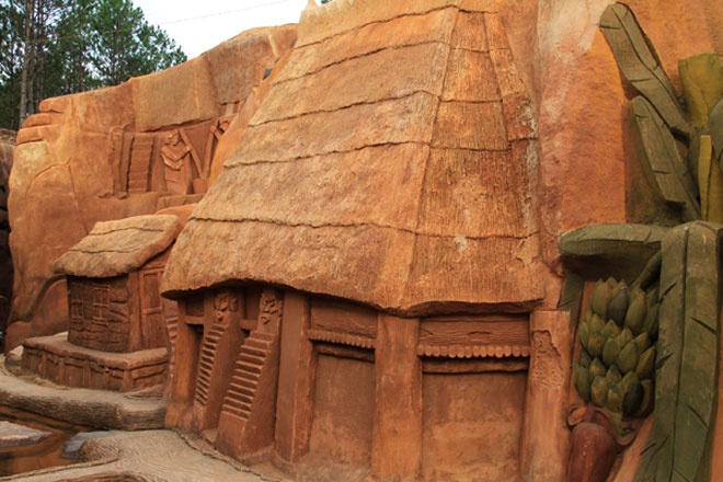 | Điều đặc biệt của công trình này, là nó được thực hiện bằng việc khoét núi và tạo hình bằng nguyên liệu đất bazan tại chỗ. |