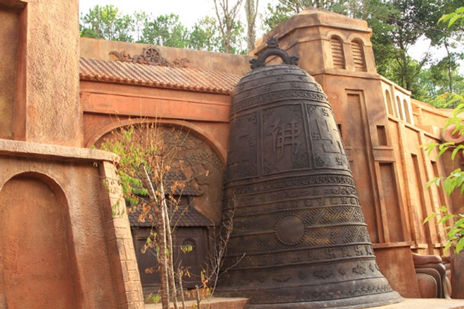| Bên cạnh lịch sử hình thành của thành phố ngàn hoa xinh đẹp, các công trình kiến trúc nổi tiếng cũng được mô phỏng trong công trình. Tuy với kích thước nhỏ lại nhưng dáng dấp đường nét lại đạt đến độ chính xác so với nguyên mẫu. Trong ảnh là hình ảnh thiền viện Trúc Lâm với quả chuông to ngay lớn đặt bên cạnh. |