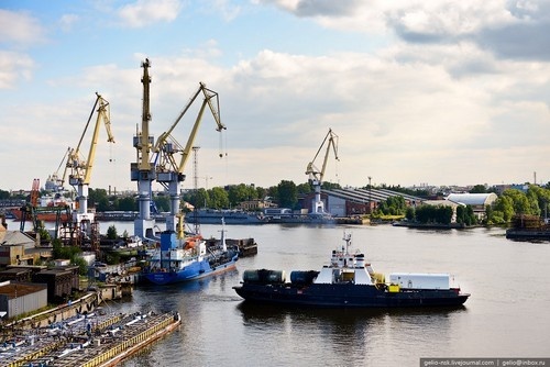 | Toàn cảnh nhà máy đóng tàu lâu đời nhất nước Nga nhìn từ trên không. |