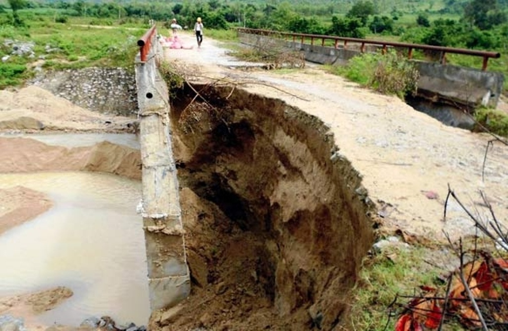 Cầu Soi Lốt trên đường dẫn vào nhà máy bị lở một mố cầu, cầu tràn suối Cát bị vỡ tường dẫn và bị nước cuốn trôi một nhịp.