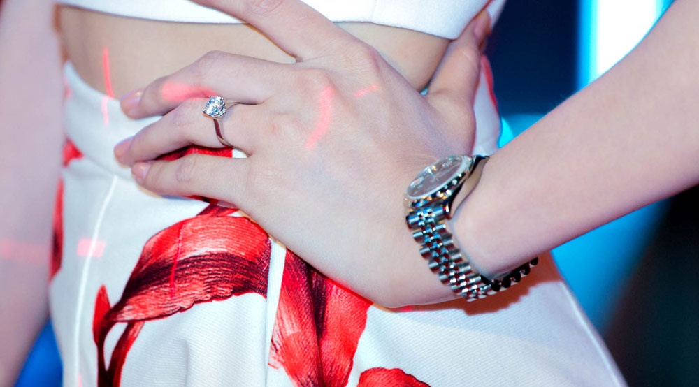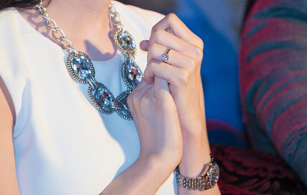 Chiếc nhẫn đính kim cương được người đẹp đeo ở ngón tay áp út, theo nguồn tin thân cận, đây chính là món quà thay cho lời cầu hôn của bạn trai cô có giá trị không dưới một tỷ đồng.