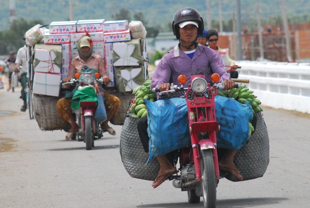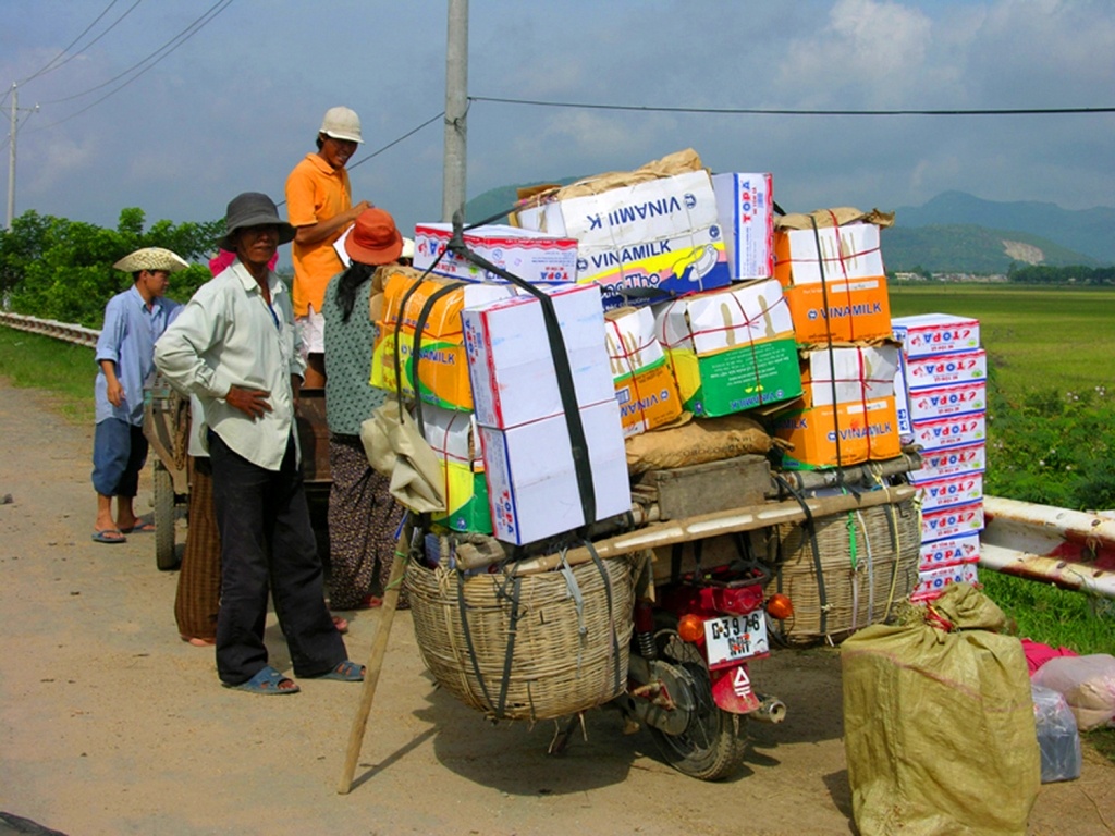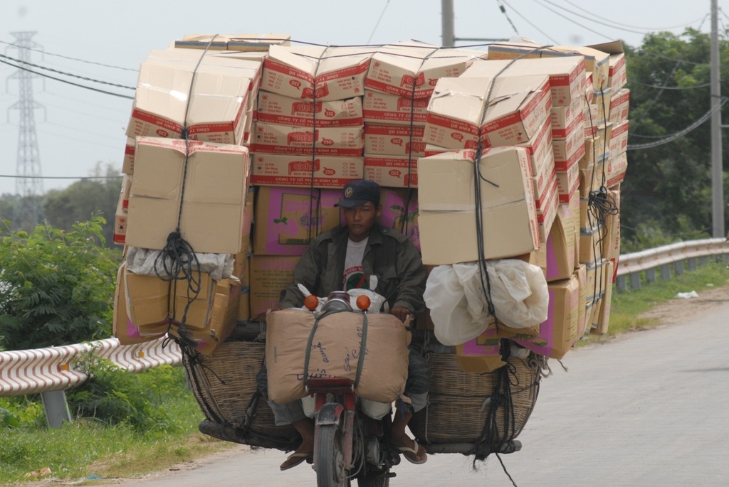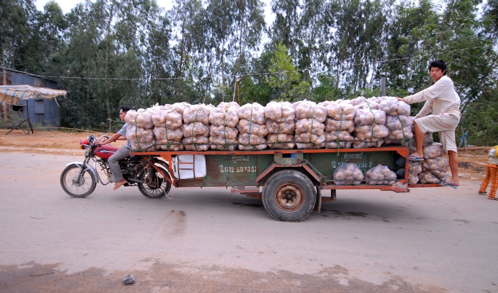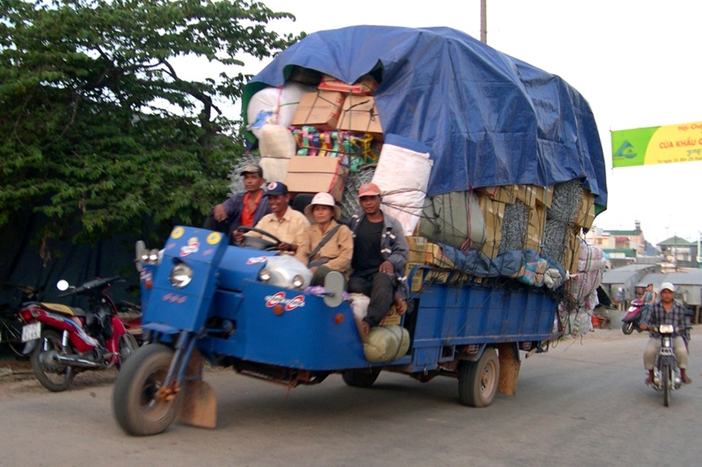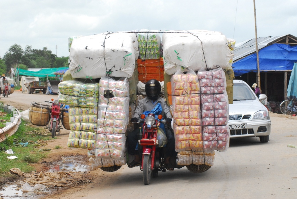 Một thương buôn người Campuchia cho biết ngày nào cũng qua cửa khẩu huyện Tịnh Biên, tỉnh An Giang để ấy nông sản và hàng tiêu dùng. Chiếc xe Honda của người này chở được gần 1.000kg hàng, còn xe thồ (còn gọi là xe loi thùng) khi chế lại có thể tải 10 - 15 tấn.