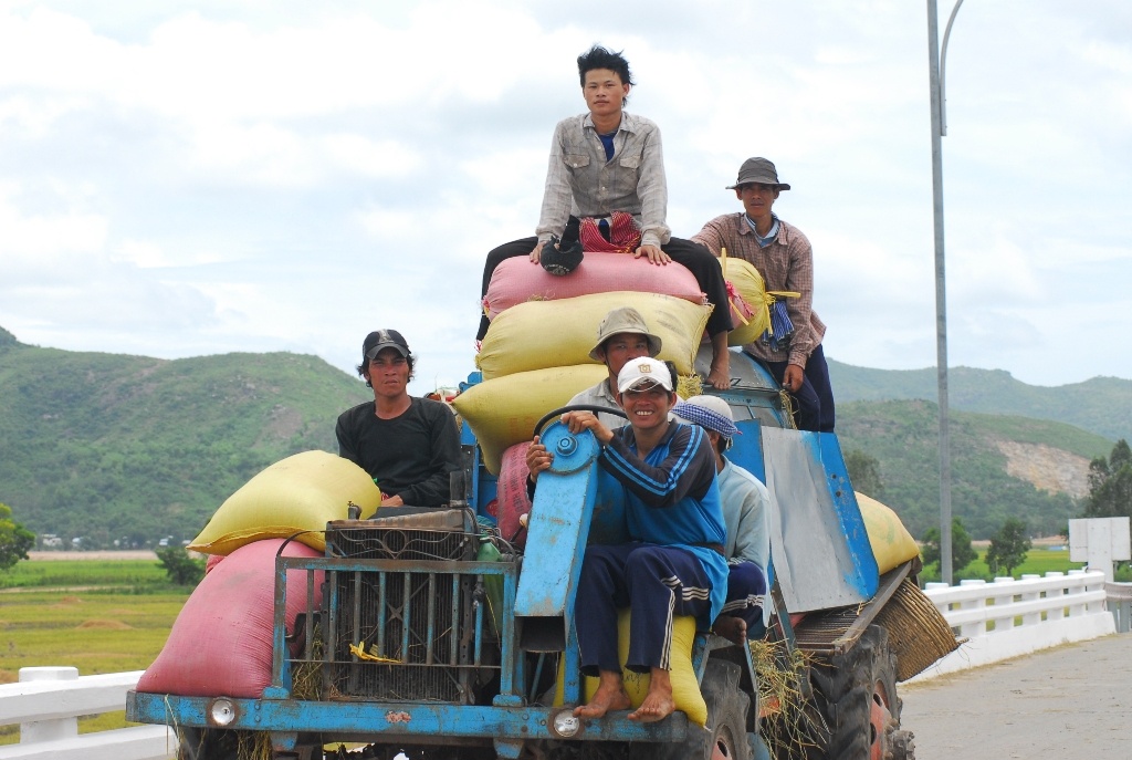 | Ngồi chồm hổm trên xe để chồng chở về nước. |