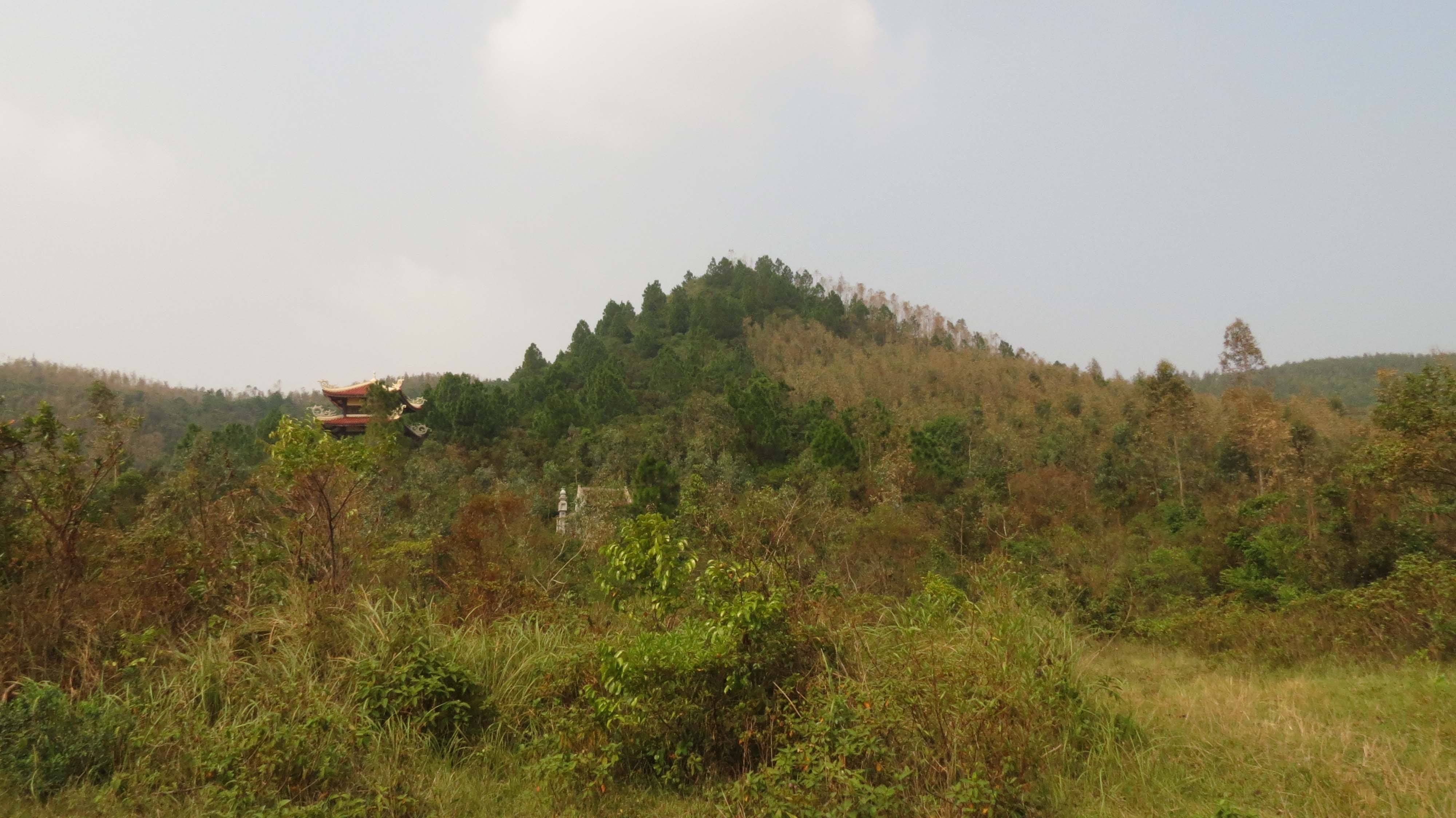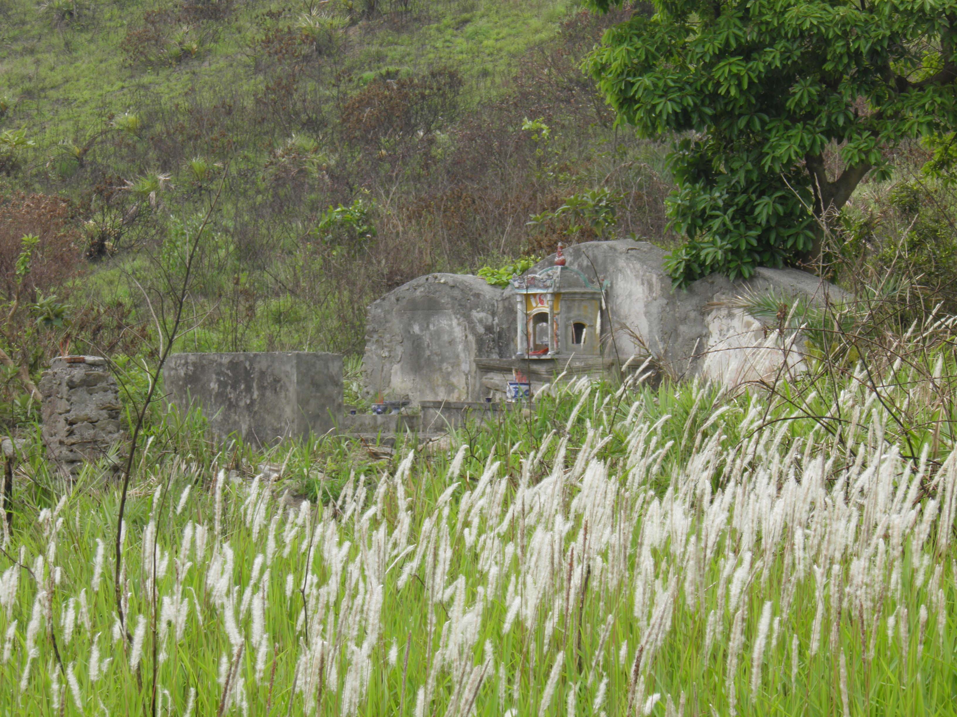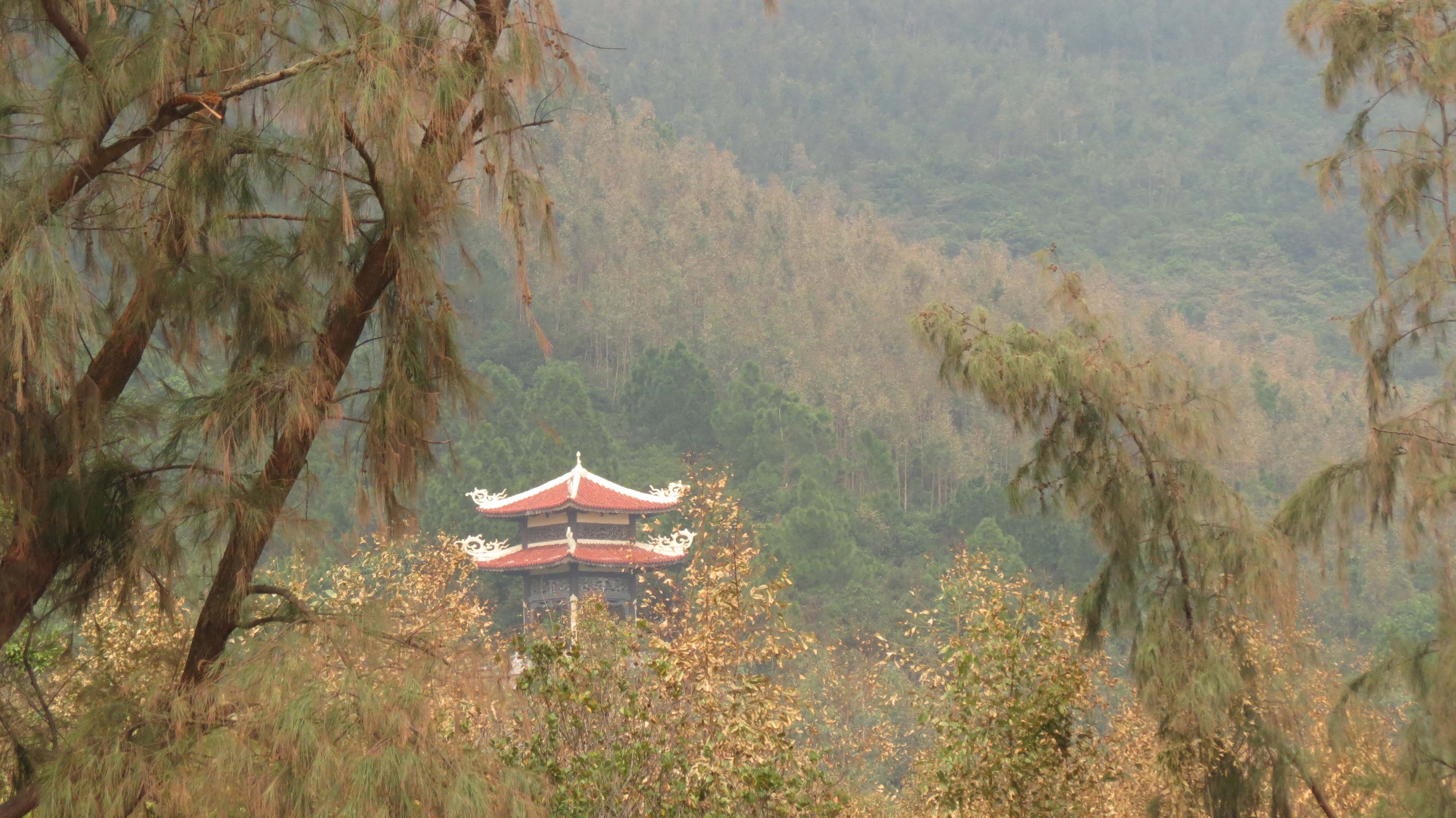 | Tại đây có ngôi miếu và một mái chuông đã được dựng lên từ mấy năm trước. |
