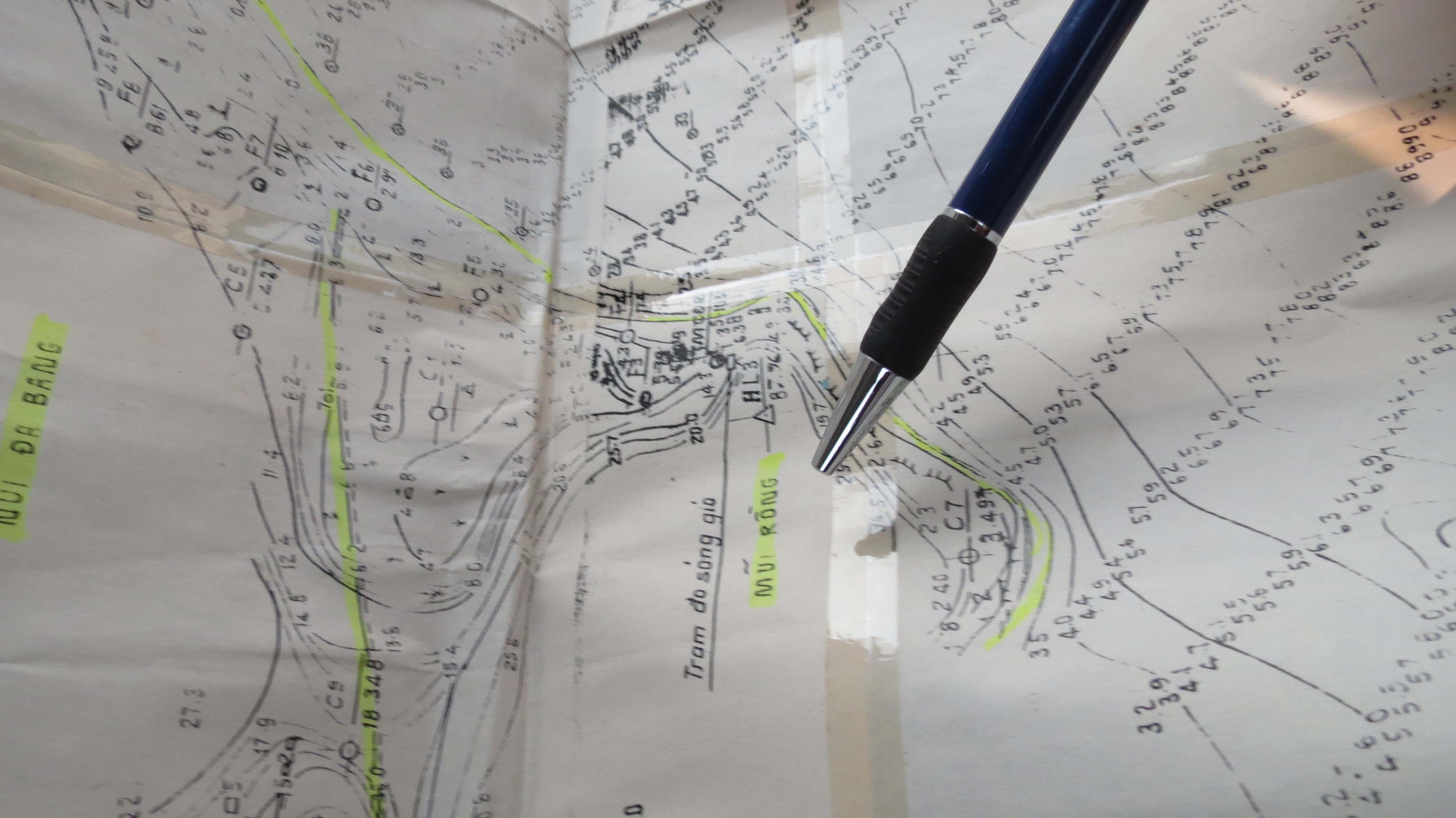 | Địa danh Mũi Rồng trên bản đồ vẽ tay. |