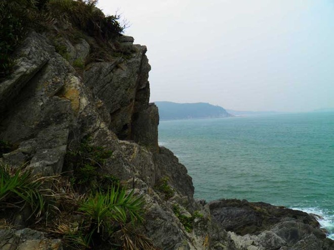 | Bãi biển Vũng Chùa có cấu tạo địa chất đặt biệt, những thớ đá xếp lên nhau như những chiếc vảy của con rồng đang ngơi nghỉ. |