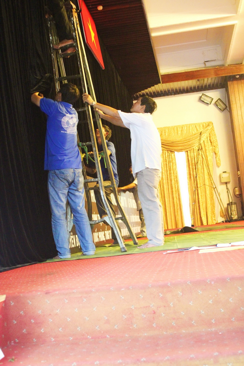 | Màn hình lớn được dựng 2 bên sảnh hội trường. |