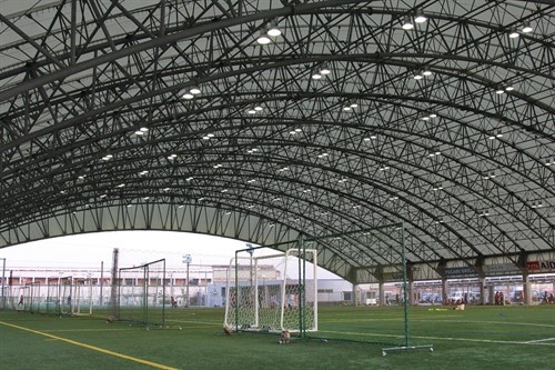 | Sân bóng có mái che giúp các cầu thủ tập luyện trong mọi điều kiện thời tiết. Kinh phí xây dựng của J-Green Sakai lên đến 5,6 tỷ yên (gần 1.200 tỷ đồng Việt Nam) được lấy từ các nguồn: LĐBĐ Nhật Bản, ngân sách tỉnh Osaka, ngân sách thành phố Sakai và Hội đồng thể thao Nhật Bản. |
