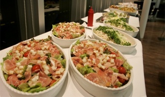 | Phòng ăn tại trung tâm, nơi có nhiều món ăn tự chọn phong phú. Các cầu thủ U19 Việt Nam sẽ không quá lo lắng về chuyện ăn uống tại J-Green Sakai bởi các món ăn khá gần gũi như ở quê nhà. |