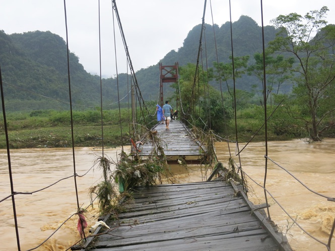 Cây cầu treo ở xã Hóa Thanh (huyện Minh Hóa, Quảng Bình) bị sập.