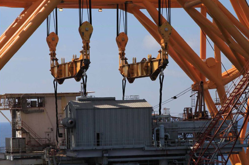 Người ta sẽ đưa 4 móc lớn của cần cẩu vào các cạnh giàn khoan. Những móc này đảm bảo cho giàn khoan thăng bằng khi nó được nhấc lên không trung. Theo các nhà sản xuất, lực nâng của Versabar VB 10.000 đạt 7.500 tấn. Chúng có thể nâng các vật thể lên cao hàng chục mét. |