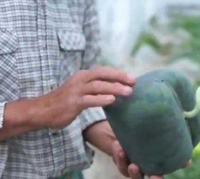 | Được một láng giềng gợi ý, lão nông người Nhật Kimura đã đổ công sức nghiên cứu cả ngày lẫn đêm để tìm ra cách làm cho những quả dưa hấu tròn truyền thống mang hình trái tim. |