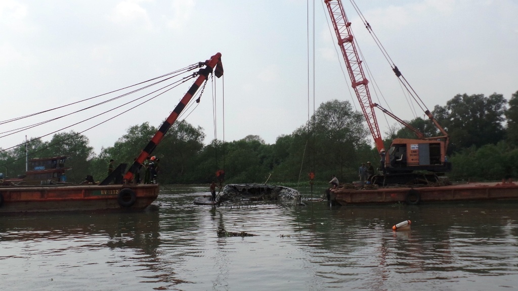 | Ngày 25/1, Công ty TNHH trục vớt Sông Thương đã điều động hai sà lan cần cẩu loại 120 tấn, ba tàu kéo cùng lực lượng công an, cảng vụ hàng hải TP.HCM, lực lượng PCCC để lên phương án trục vớt xác tàu Vina Express bị chìm dưới sông sài Gòn do hỏa hoạn vào ngày 20/1. |
