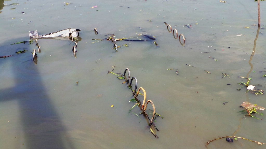 | Phần đuôi tàu vẫn đang còn chìm dưới mặt nước. |