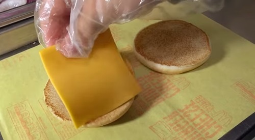 | Kế tiếp, một lát pho mát được đặt lên trên. |