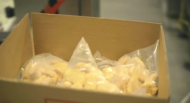 Các miếng gà đông lạnh được đóng gói, bỏ hộp và chuẩn bị lên đường. Khi tới nơi, trông chúng như thế này. |