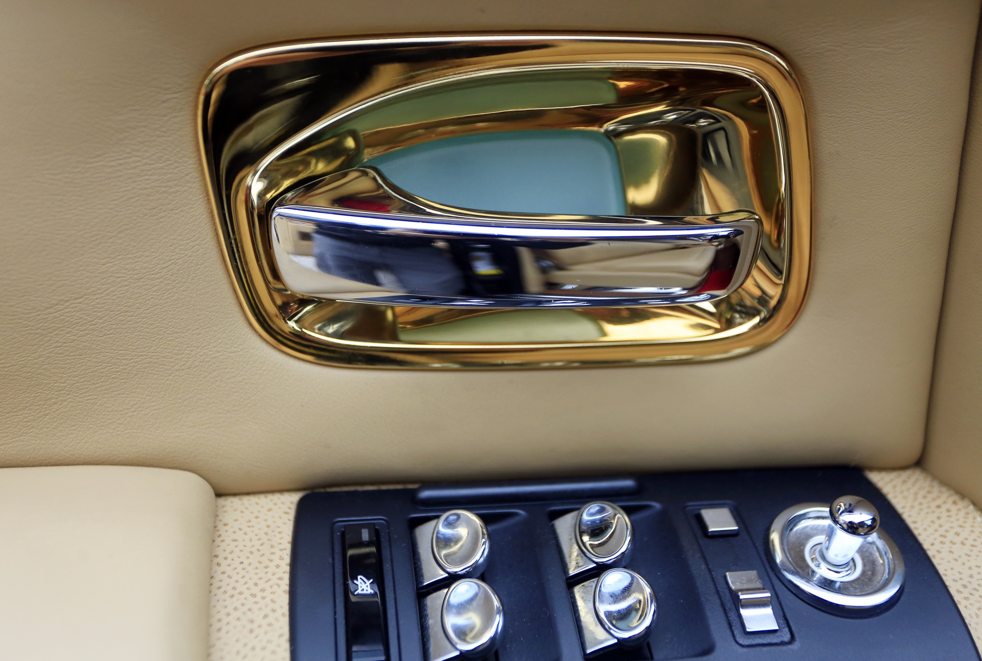 | Vàng được mạ cho các chi tiết của chiếc Rolls-Royce Phantom có độ tinh khiết 22k. Ngoài ra, công nghệ sơn nano chống xước cũng được áp dụng để bảo vệ lớp mạ. |