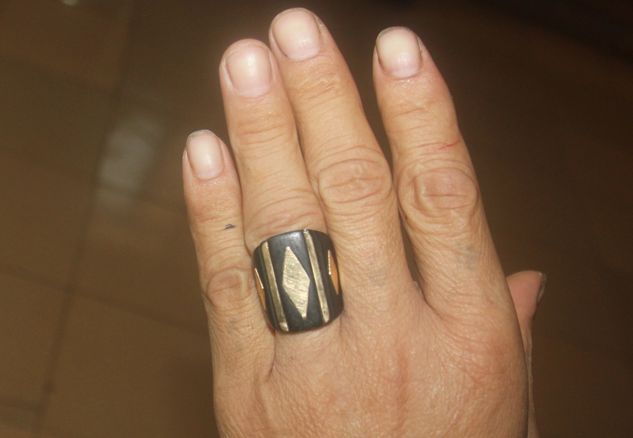 | Nhẫn được làm bằng King’s coral cẩn thêm vàng có giá trên 3,5 triệu đồng. |