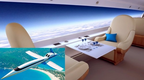 Siêu máy bay cá nhân S-512 đang được lên kế hoạch sản xuất, với cửa sổ ảo bao quanh thân thu lại toàn bộ cảnh quan phía ngoài.