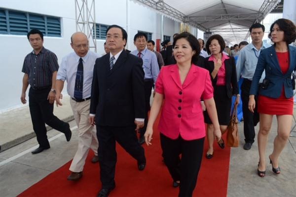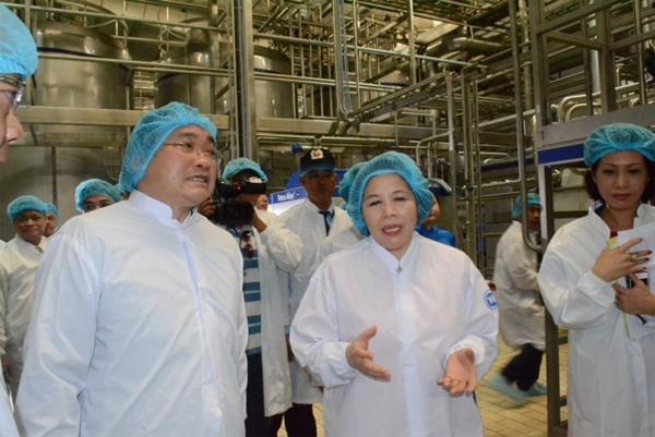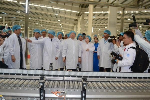 | Bà Mai Kiều Liên, Chủ tịch Vinamilk cùng Phó thủ tướng Hoàng Trung Hải đi tham quan nhà máy mới. |