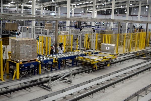 | Hệ thống robot LGV tự hành hoàn toàn tự động được điều hành bởi hệ thống máy tính trung tâm, tự động từ khâu nhập nguyên liệu - sản xuất - thành phẩm - đóng gói. |