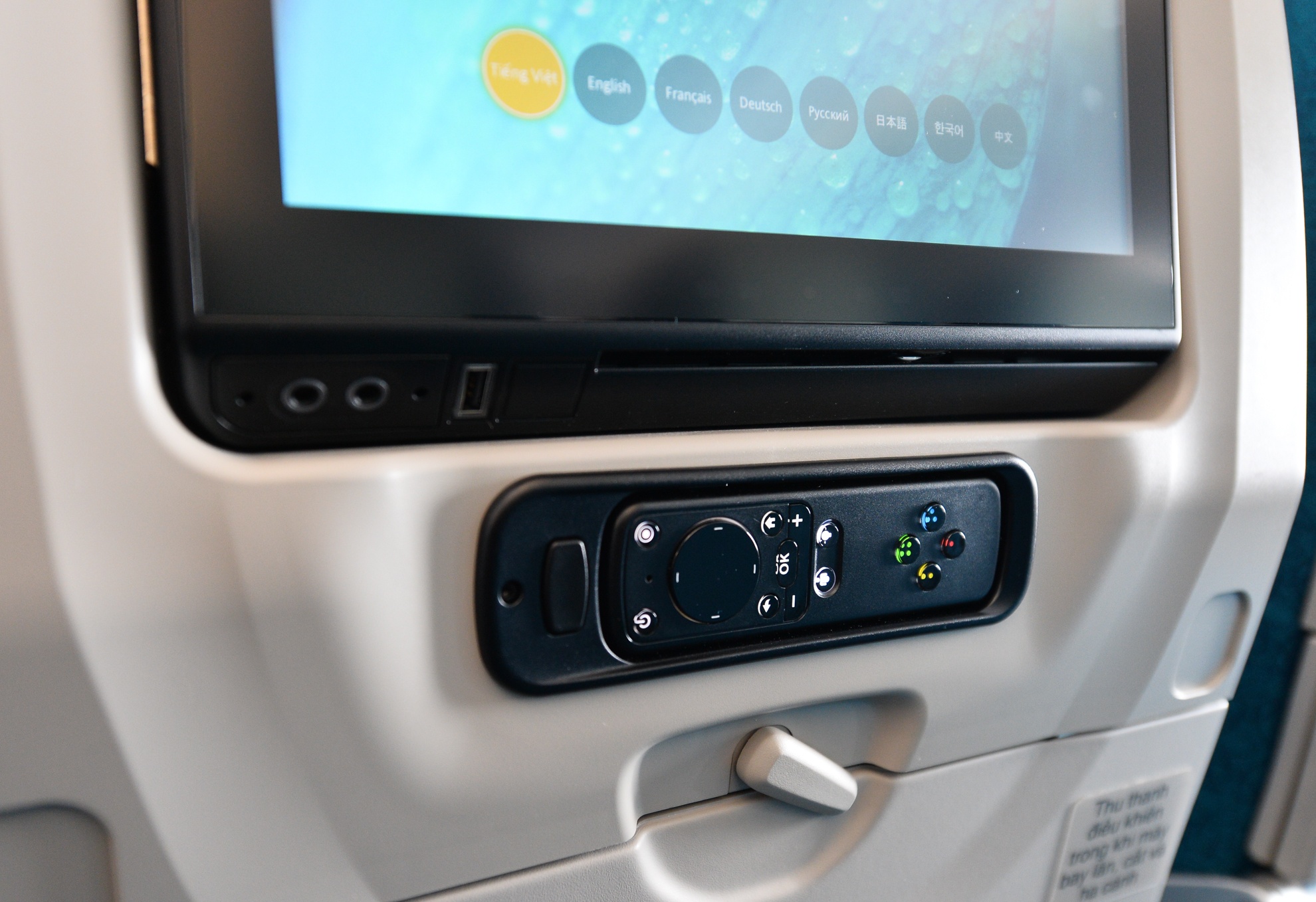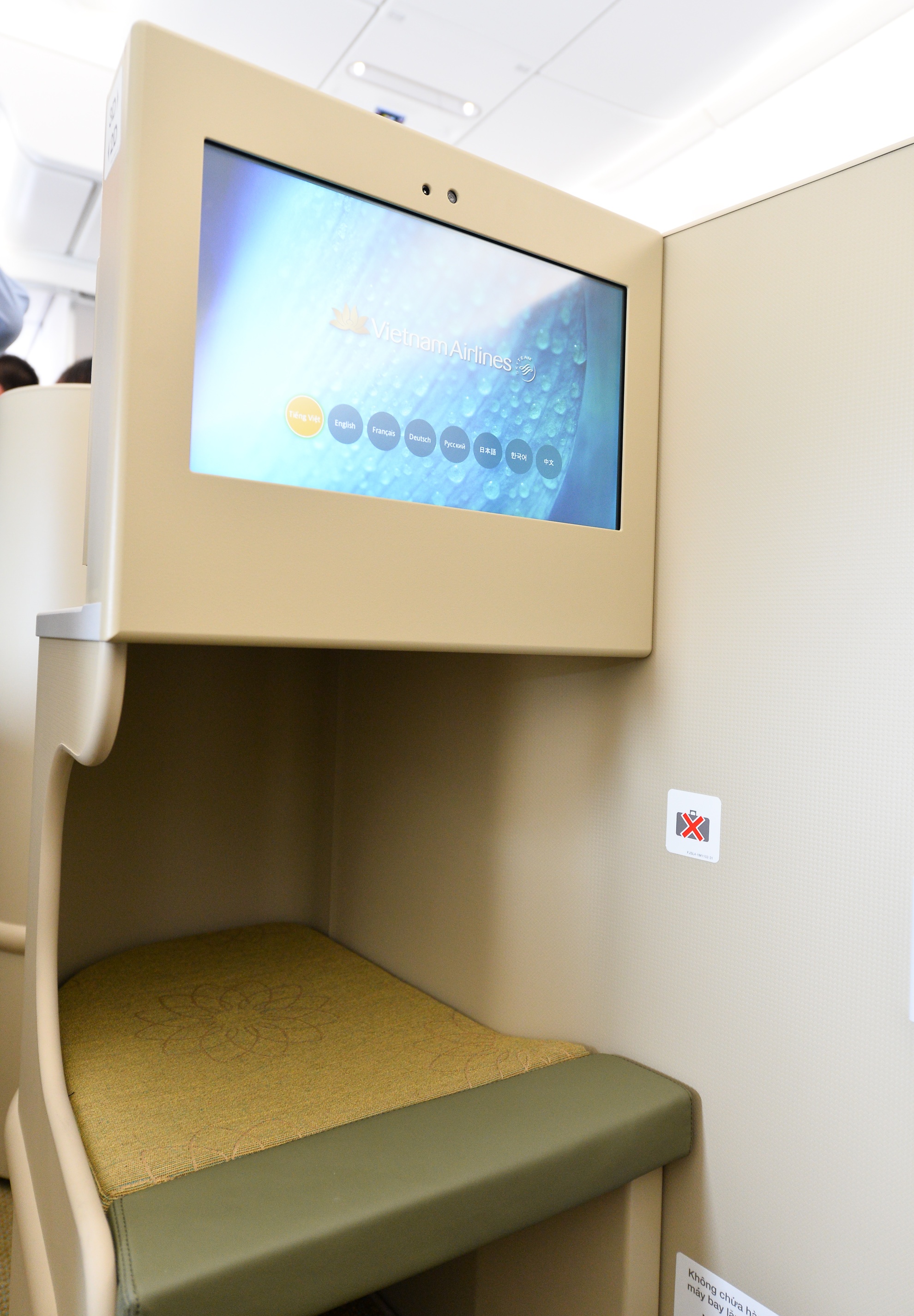 | Tại khoang hạng thương gia, ngoài ghế có chức năng ngả ra như một chiếc giường nhỏ còn có màn hình tivi 17 inch và chỗ để chân rộng rãi. |