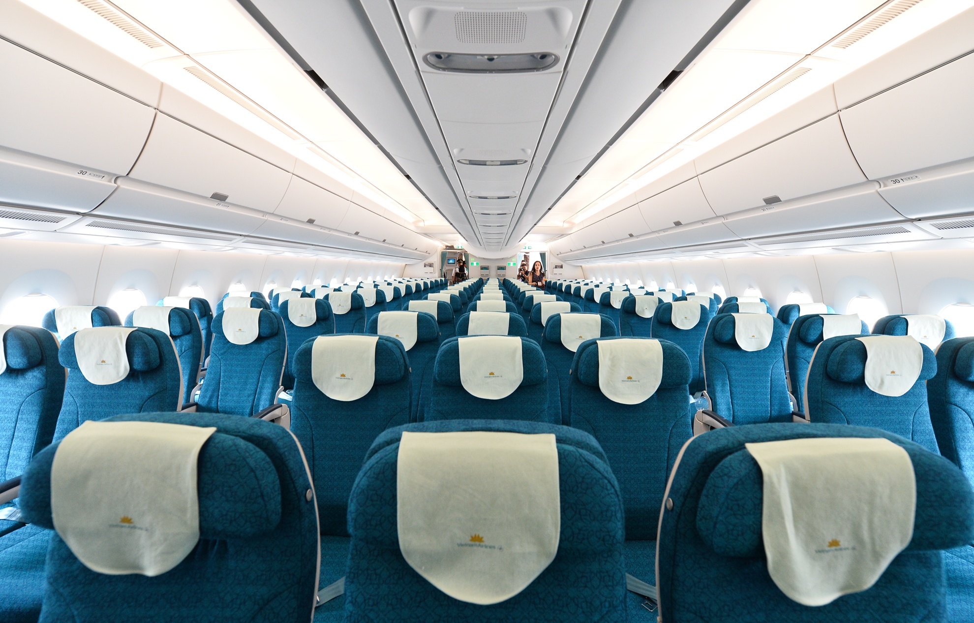 | Khoang hạng phổ thông bên trong chiếc A350-900. |