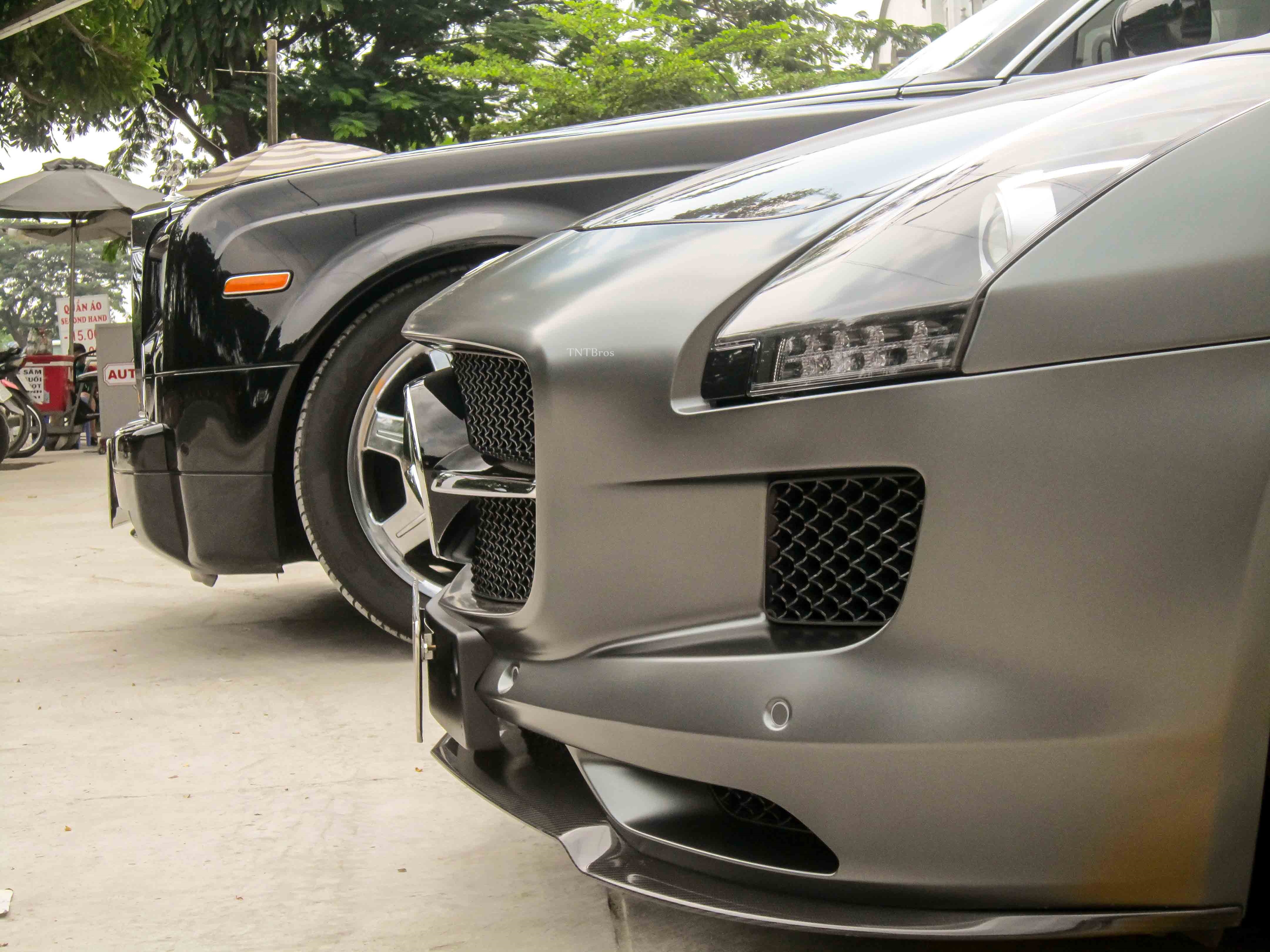 Ngày 18/10, nhân sự kiện khai trương một showroom xe sang ở quận 7, hàng loạt mẫu xe trị giá lên đến cả chục tỷ đồng cùng hội tụ. Nhưng nổi bật nhất là chiếc Mercedes-Benz SLS của nhà chồng diễn viên Tăng Thanh Hà. |