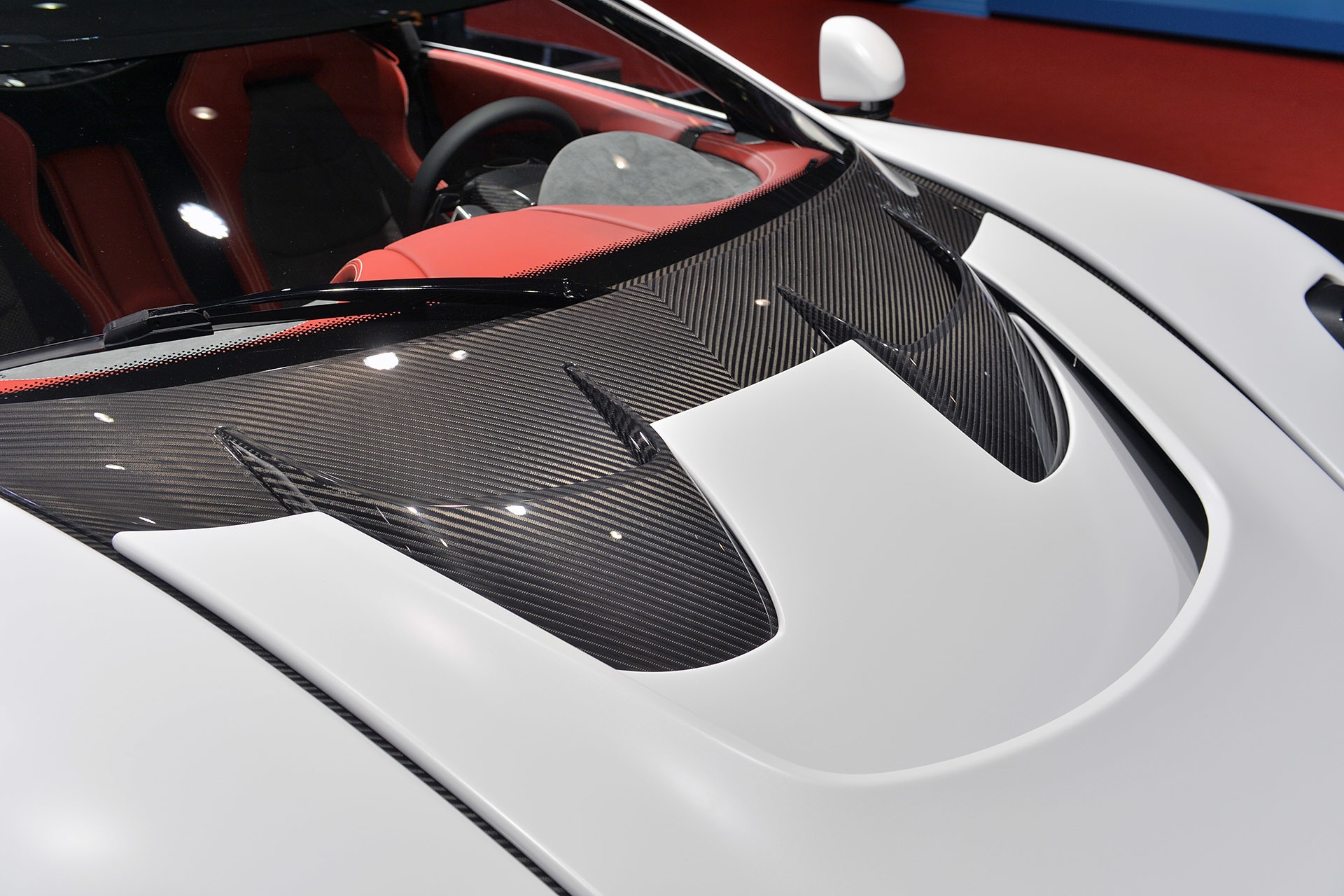 | Nắp ca-pô bằng sợi carbon với những đường gân cứng cáp. |