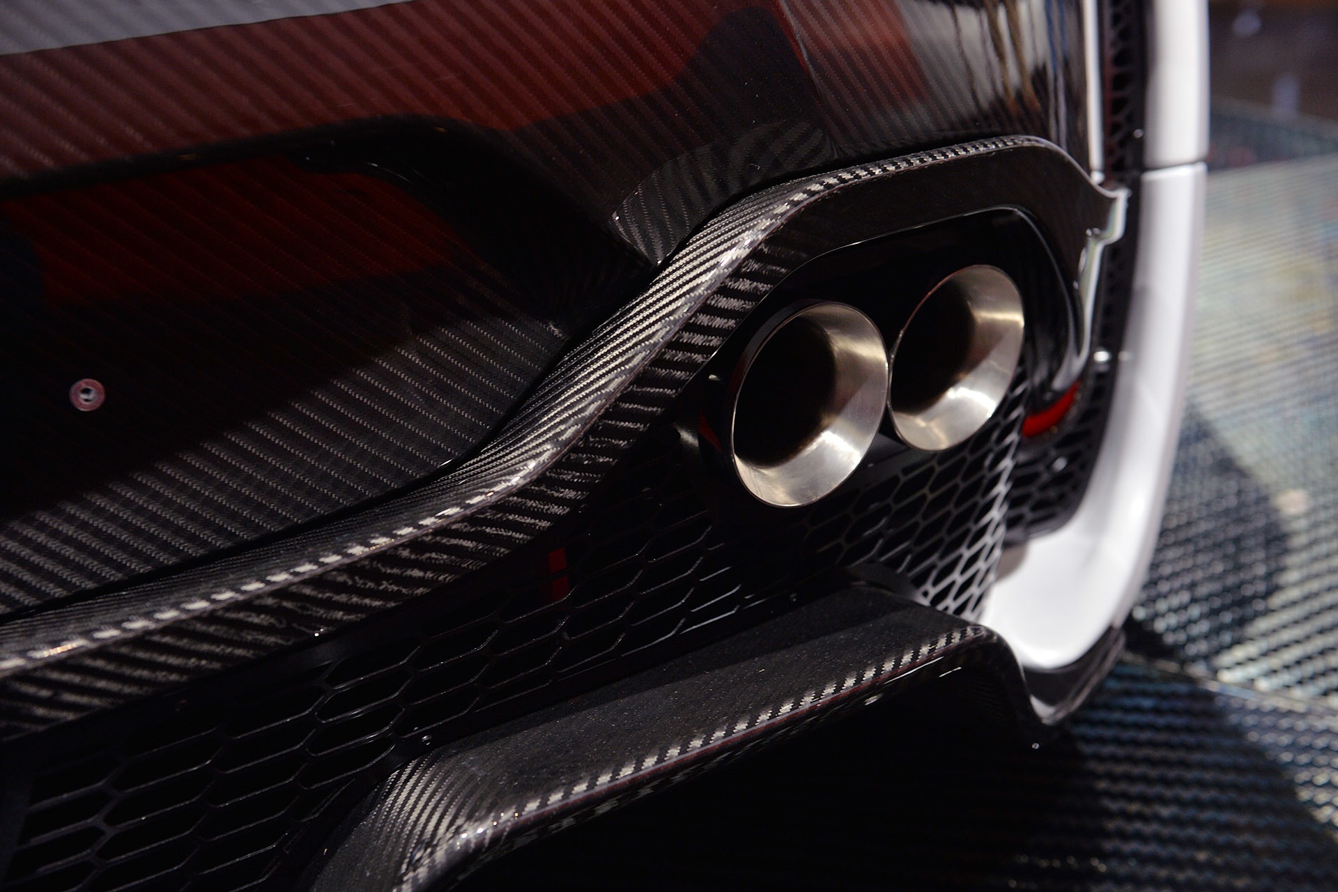 | Tên xe được đúc nổi cách điệu trên bề mặt sợi carbon. |