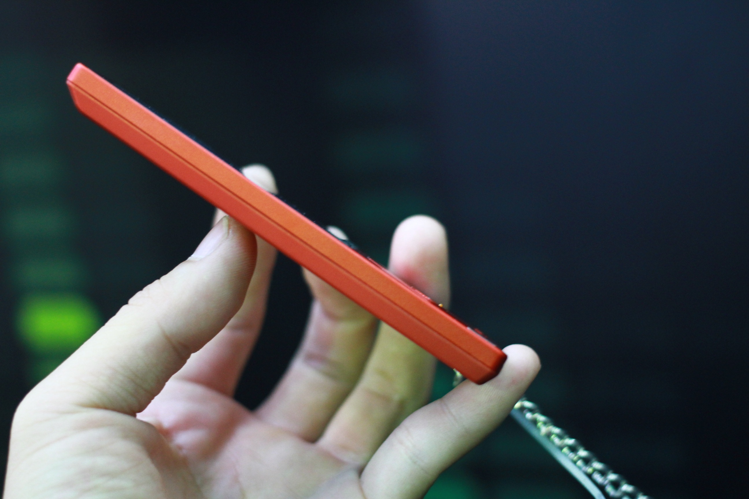| Cạnh trên không chứa chi tiết nào, đường vát từ thân máy về mặt lưng khiến máy trông mỏng và góc cạnh hơn. |