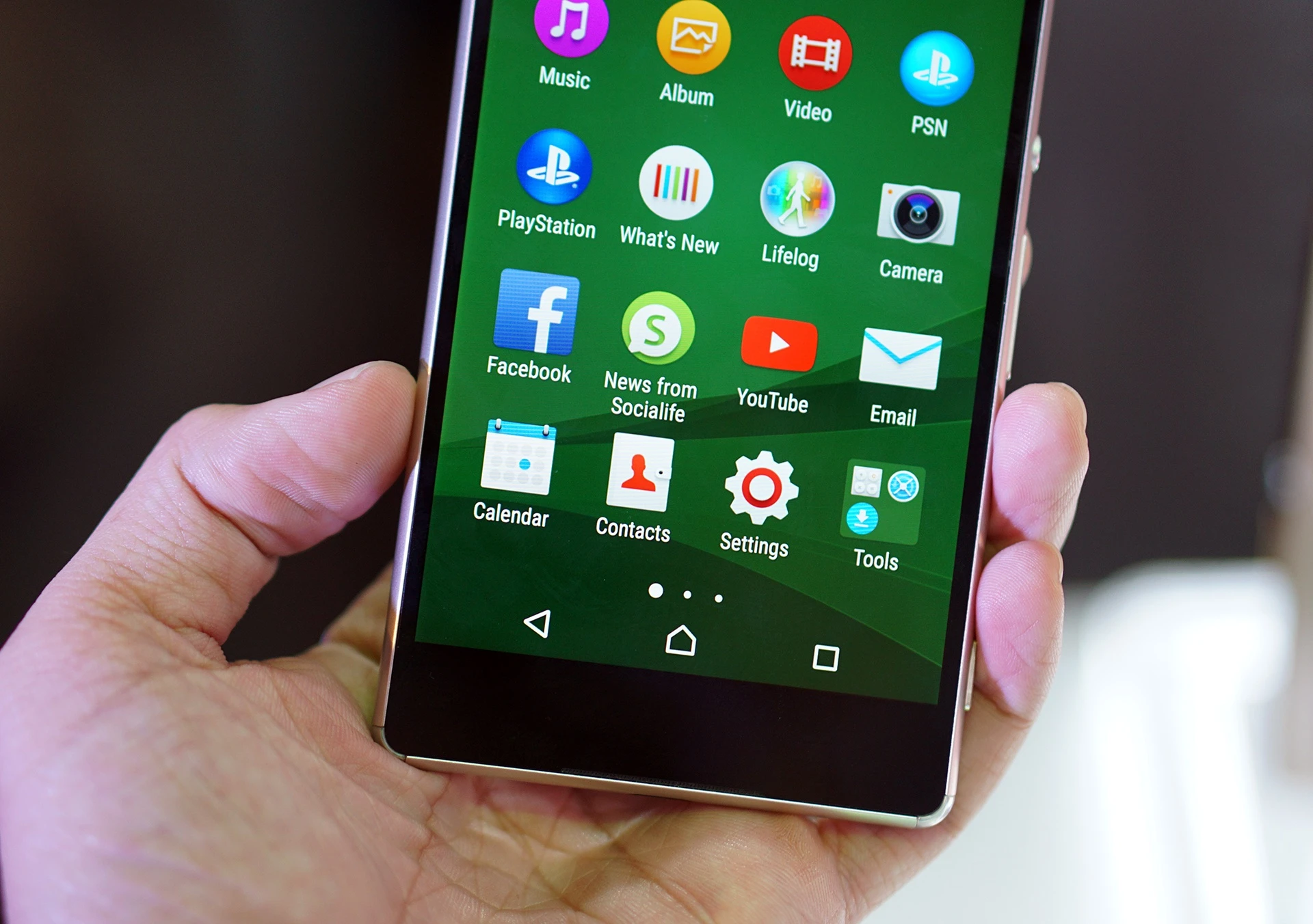 | Máy dùng màn hình Full HD 5,2 inch. Ba phím cơ bản của Android vẫn nằm trong màn hình. |