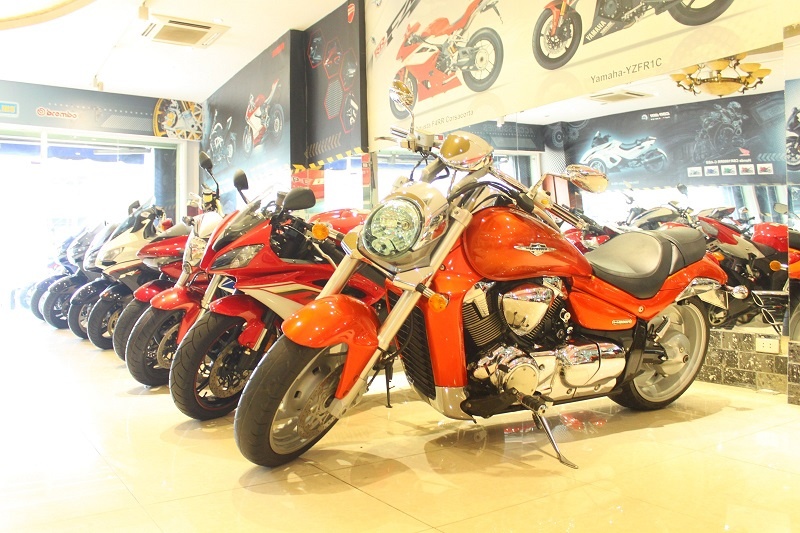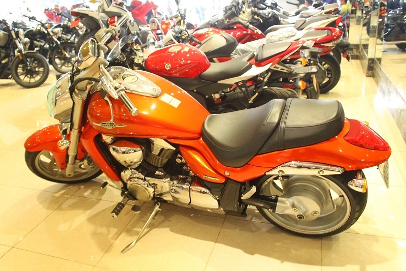 | Suzuki Intruder ra đời năm 2006 với sứ mệnh trở thành vua trong dòng xe cruiser (xe đường trường). Có rất nhiều phiên bản Intruder được sản xuất. Chiếc xe này là phiên bản Suzuki Intruder M1800R2, đời 2009, đang trưng bày tại một showroom mô tô trên đường Nguyễn Thị Minh Khai, TP.HCM. |