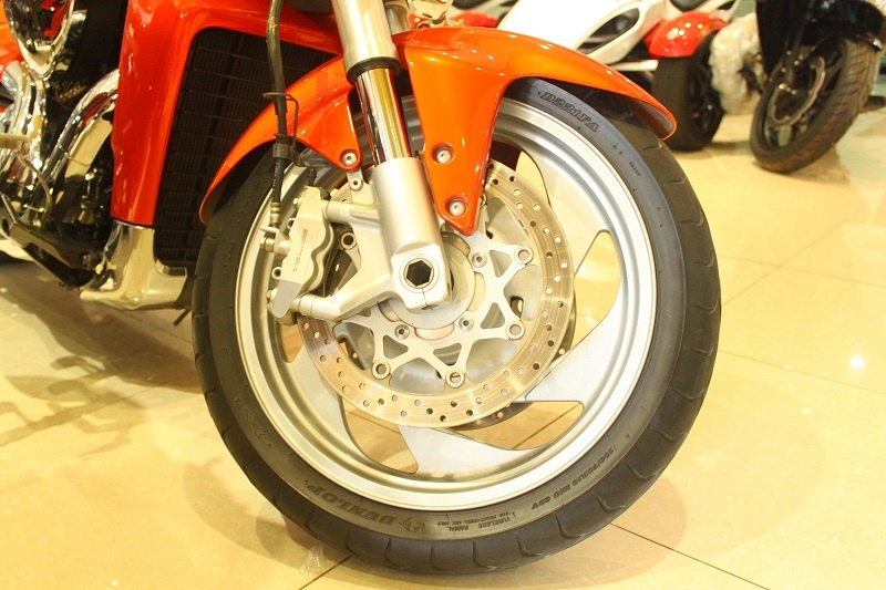| Để kìm hãm cỗ máy mạnh mẽ này, xe được trang bị hệ thống phanh đĩa đôi phía trước, đĩa đơn phía sau. Hệ thống phanh hoạt động ổn định, đủ tin tưởng để bo cua những góc hẹp và dừng trong tình huống xấu nhất. Do kết hợp với cặp phuộc trước dài và nghiêng về phía sau nên bạn không lo bị văng xe khi phanh gấp. |