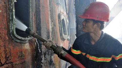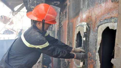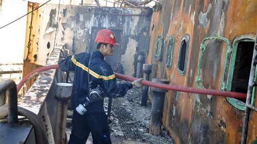 Tuy nhiên, do nước chảy xiết, gió lớn nên việc cập mạn tàu cẩu này rất khó khăn và mãi đến 6h ngày 21/10 cơ bản mới khống chế được ngọn lửa.