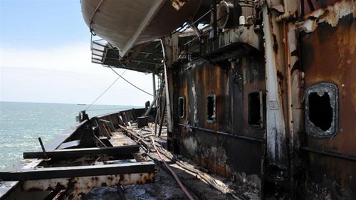 | Phần cabin của tàu cẩu Wealthy Global - nơi phát sinh ngọn lửa. |