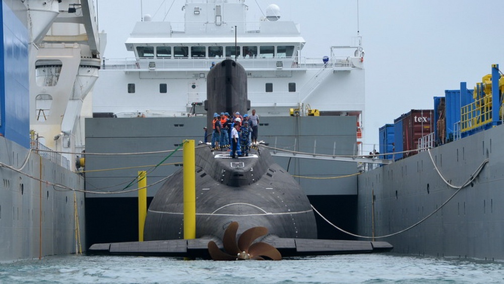| Tàu ngầm tiến vào bờ. |