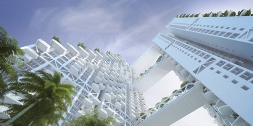 Tòa nhà "sinh đôi" Sky Habitat cao 38 tầng, được nối với nhau bởi cầu thang trên không là bể bơi đang được xây dựng tại Bishan, Singapore, và dự kiến hoàn thành trong năm 2015.