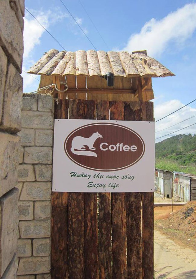 Cổng vào cửa hàng cà phê chồn nổi tiếng tại Đà Lạt.