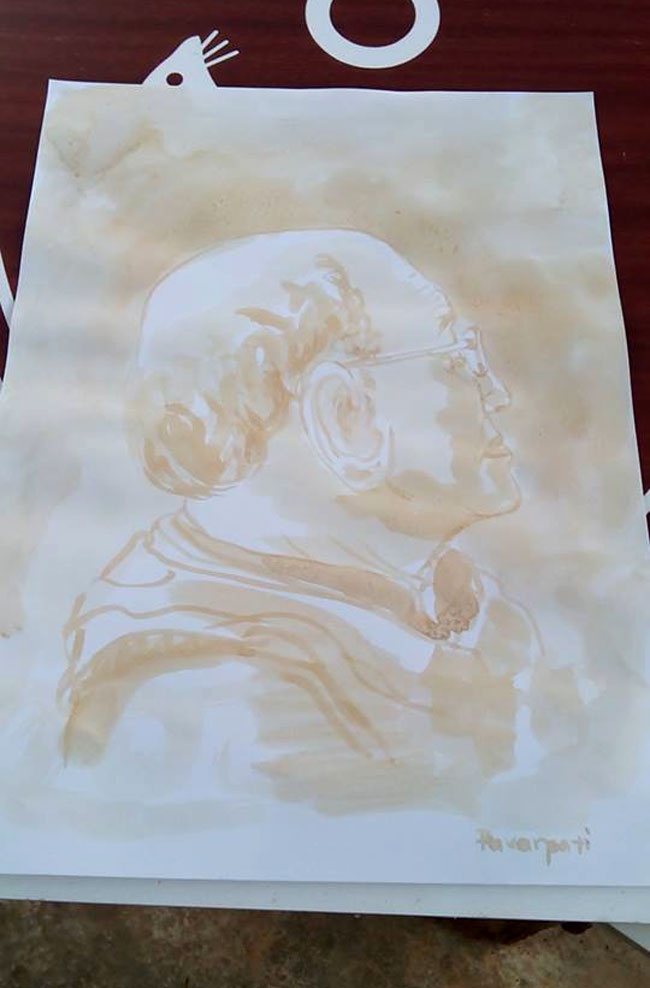 | Tại cà phê Hầm - Đà Lạt còn có dịch vụ vẽ tranh từ cà phê. Đây là tác phẩm được họa sĩ của quán vẽ theo yêu cầu của một du khách. |