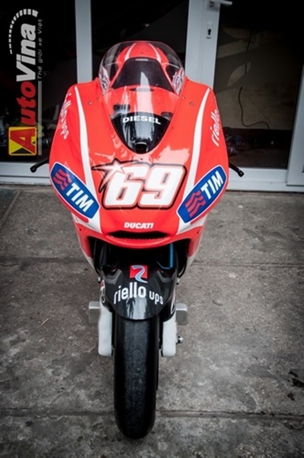 Xuất hiện tại Sài Gòn, mẫu xe đua MotoGP của Ducati mang số 69, từng được tay đua Nicky Hayden điều khiển. Ducati Desmosedici được trang bị động cơ có công suất 235 mã lực tại vòng tua 19.000 vòng/phút. Khối động cơ 1.000cc này có công suất cực đại 225 mã lực, có thể giúp siêu mô tô của Ducati đạt vận tốc tối đa hơn 330 km/h.